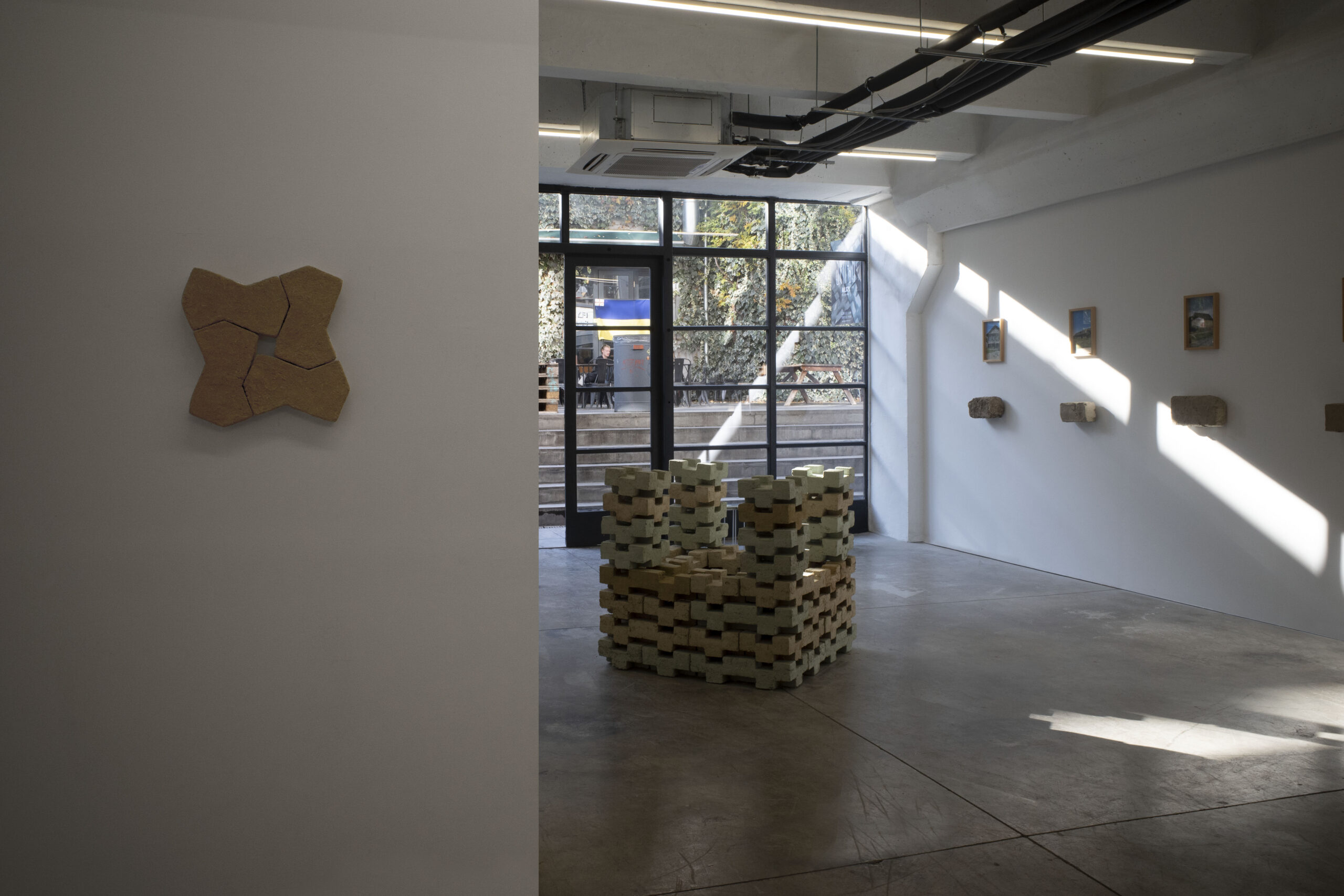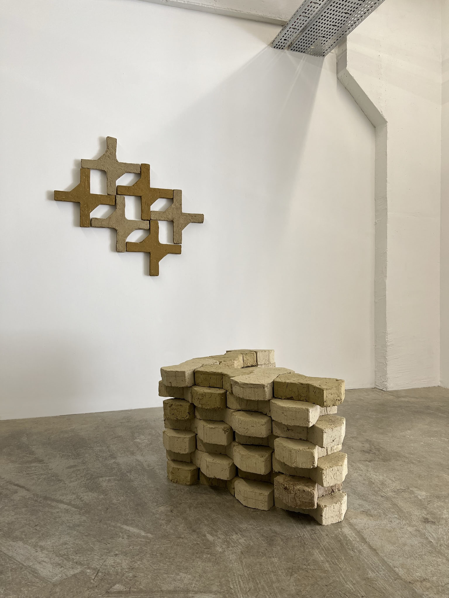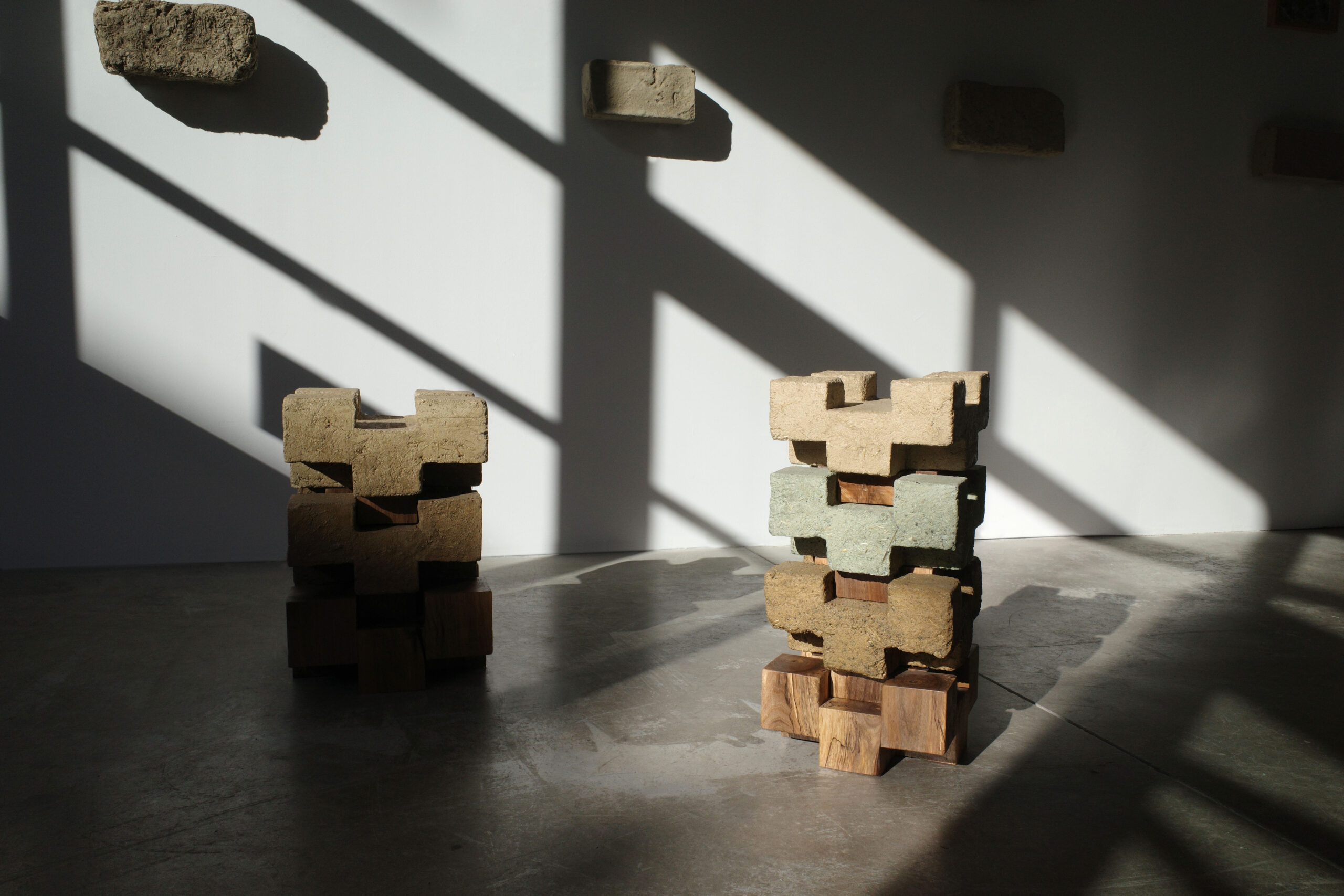 The exhibition showcased the outcomes created by participants: HAE by Mariam Papava; Domino by Jokola Kistauri; J (a crossed brick) by Elene Pichkadze; ES by Mea Miminoshvili; as well as the IAS & IAM Bricks installation by Idaaf Architects. The latter consists of two universal forms that interlock without the need for fasteners or fillers, allowing for the simple construction of pre-planned buildings. In addition, Idaaf Architects presented pieces from their Brick furniture collection, crafted in adobe.