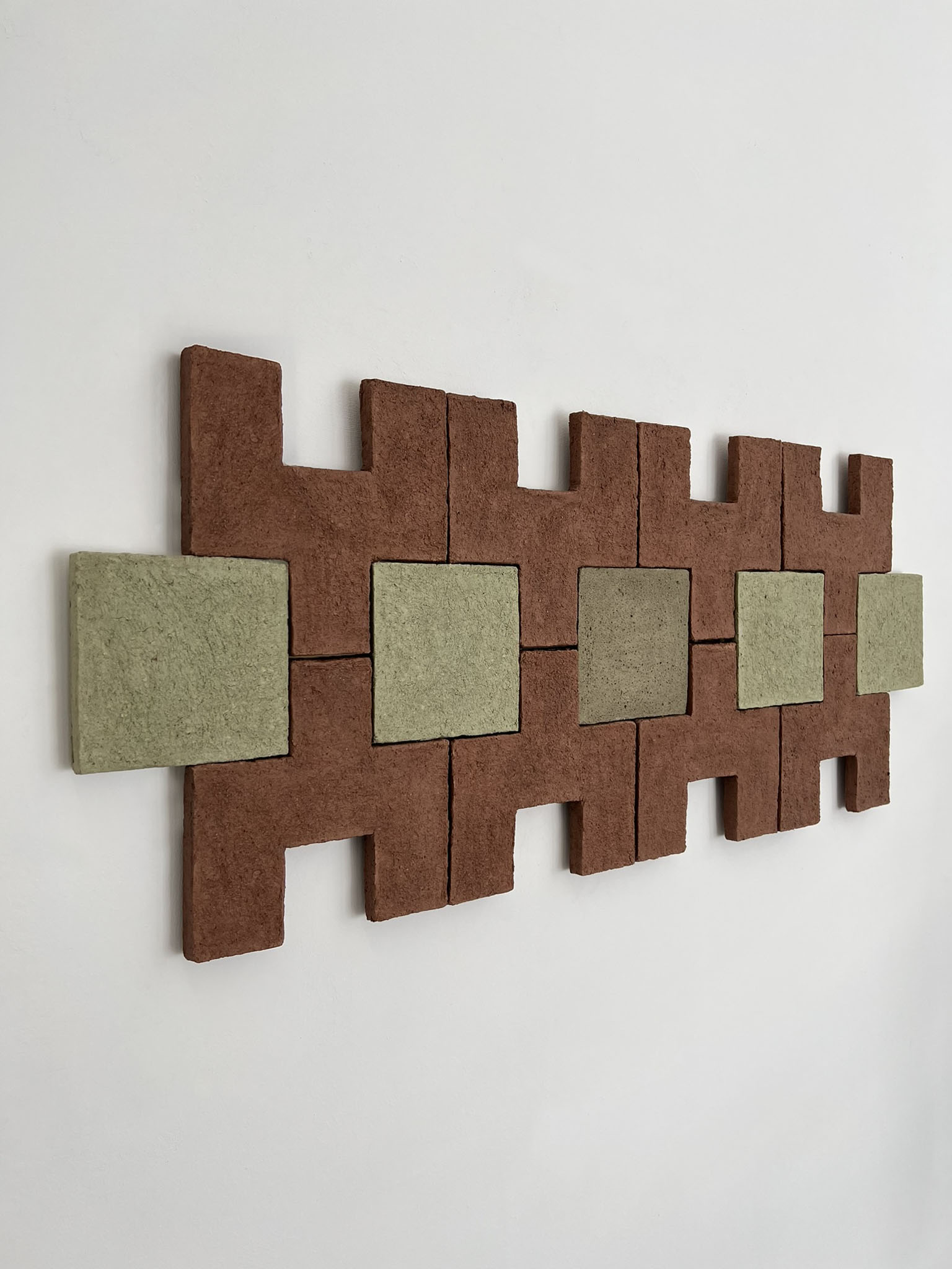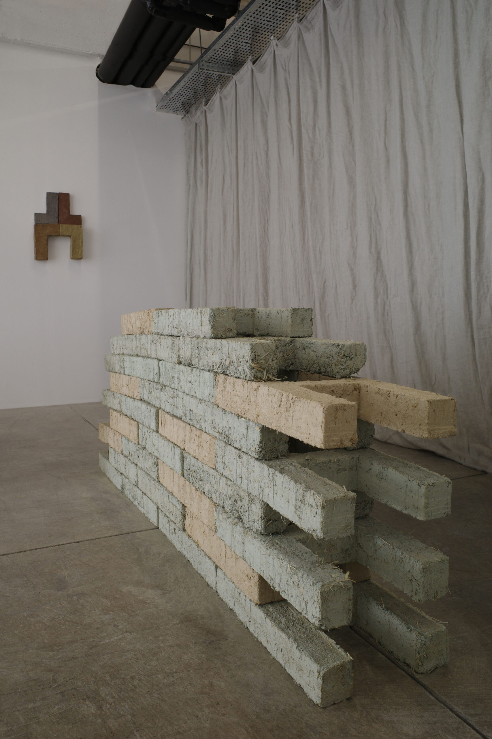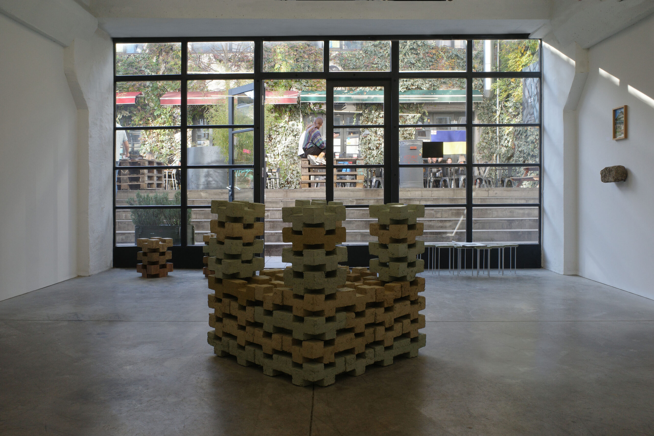 The exhibition showcased the outcomes created by participants: HAE by Mariam Papava; Domino by Jokola Kistauri; J (a crossed brick) by Elene Pichkadze; ES by Mea Miminoshvili; as well as the IAS & IAM Bricks installation by Idaaf Architects. The latter consists of two universal forms that interlock without the need for fasteners or fillers, allowing for the simple construction of pre-planned buildings. In addition, Idaaf Architects presented pieces from their Brick furniture collection, crafted in adobe.