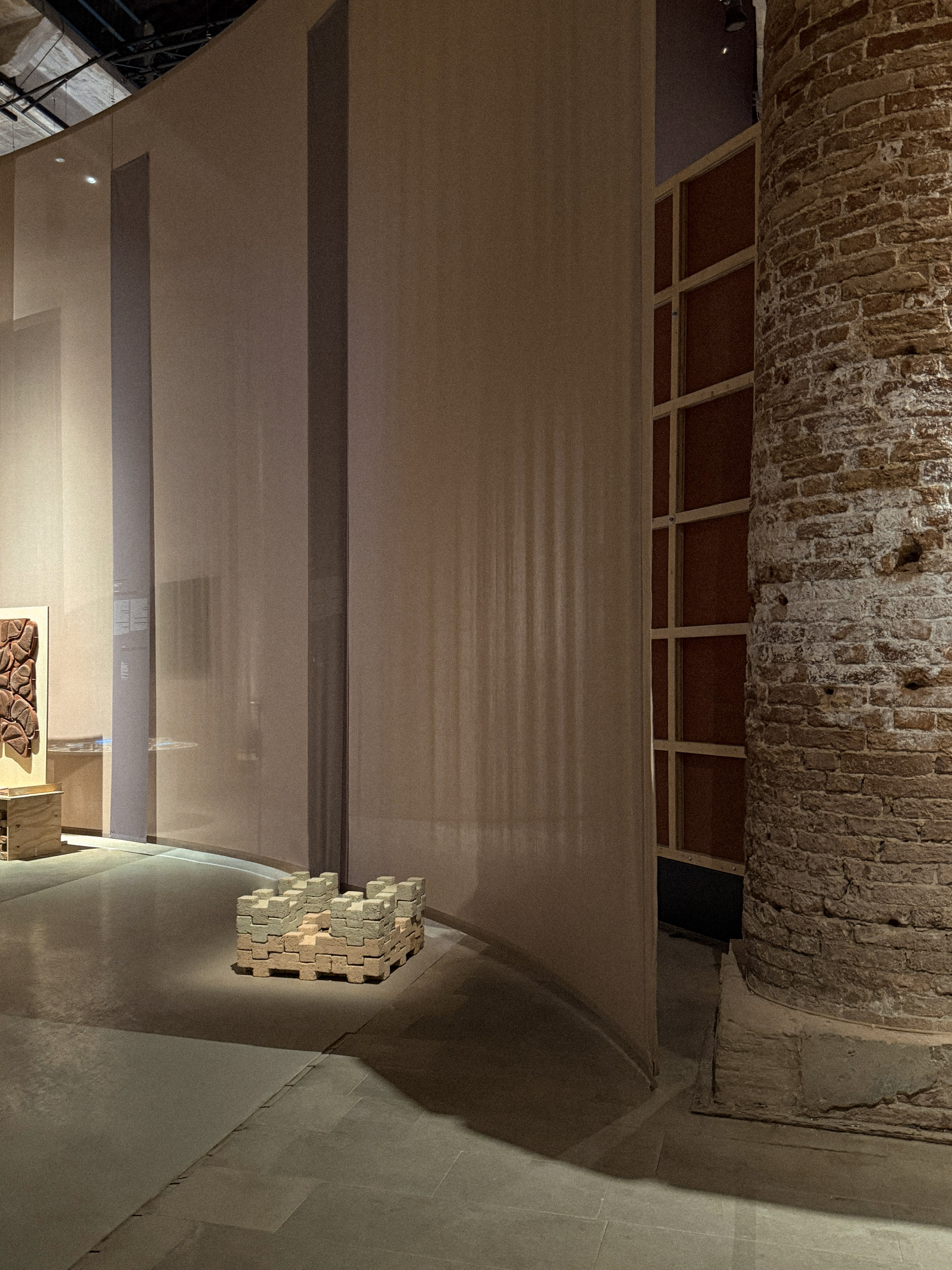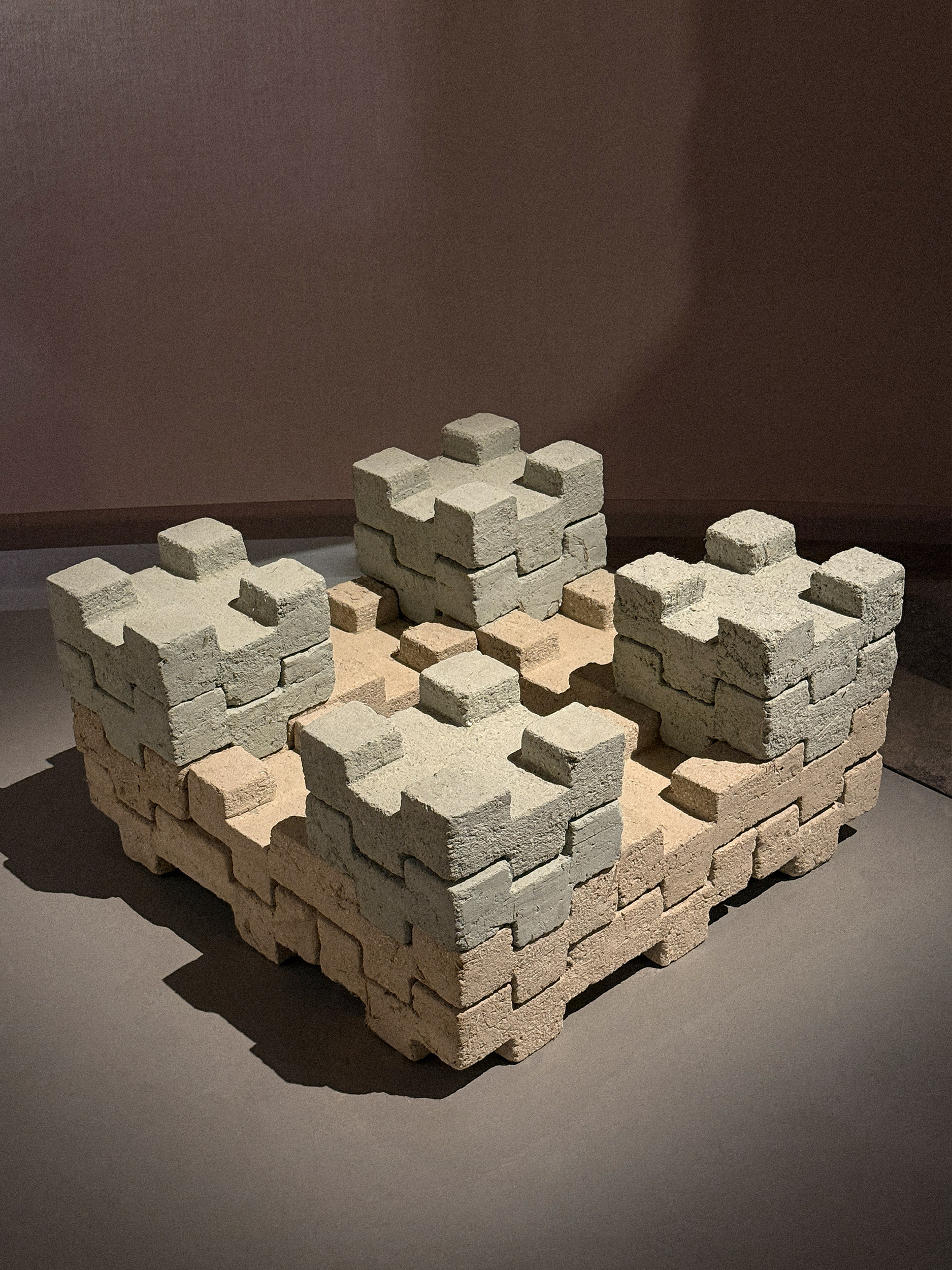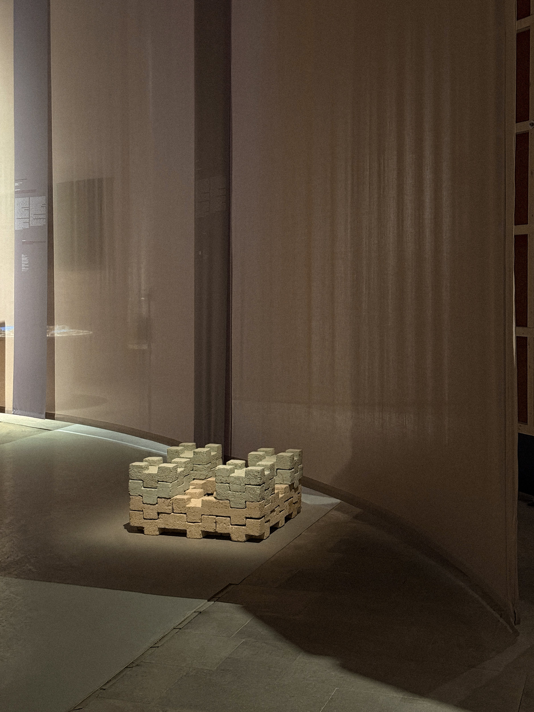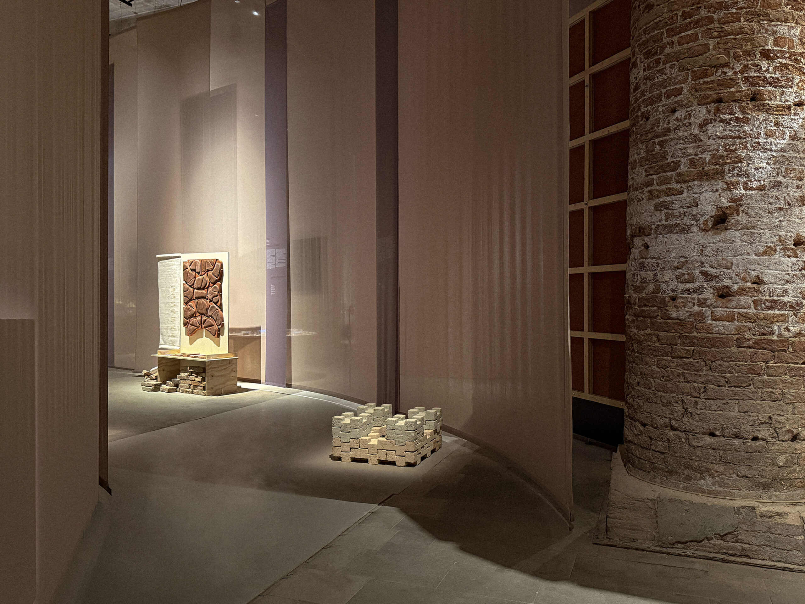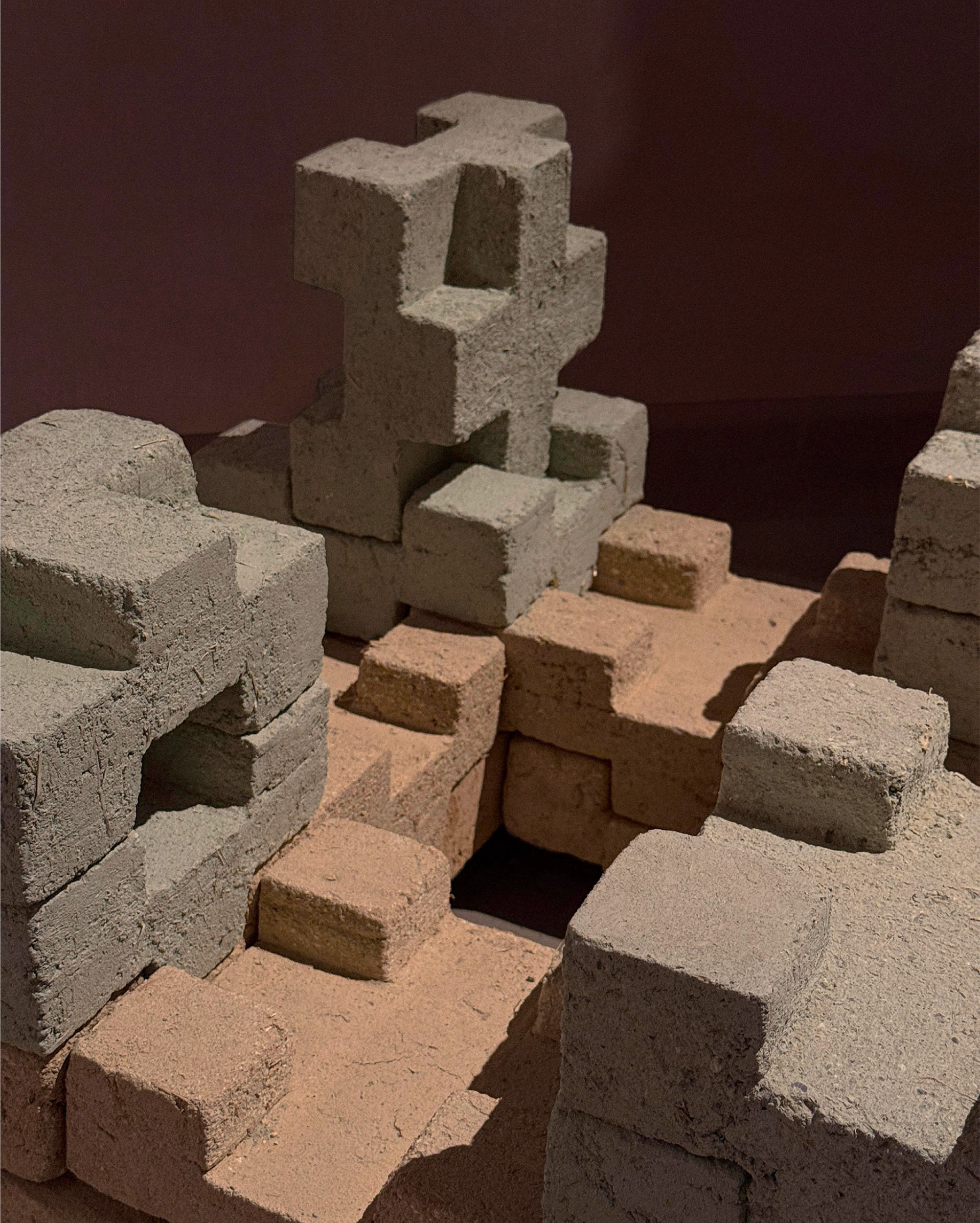 Idaaf Architects responded to the curators’ theme with Alizi, [Alizi / ალიზი – means ‘adobe brick’ in Georgian] adobe brick installation that explores modular, zero-waste architecture rooted in Georgian vernacular traditions and designed for adaptable, low-impact construction. The ‘Alizi’ installation includes 8 pieces of IAS and 8 pieces of IAM Bricks. It is a modern continuation of Georgian Architectural tradition of Adobe and was created with the idea of improving the unstable construction environment. ‘Alizi’ is a manifesto against modern industrial construction materials whose non-ecological production has led the world to face global warming and the disasters caused by it.