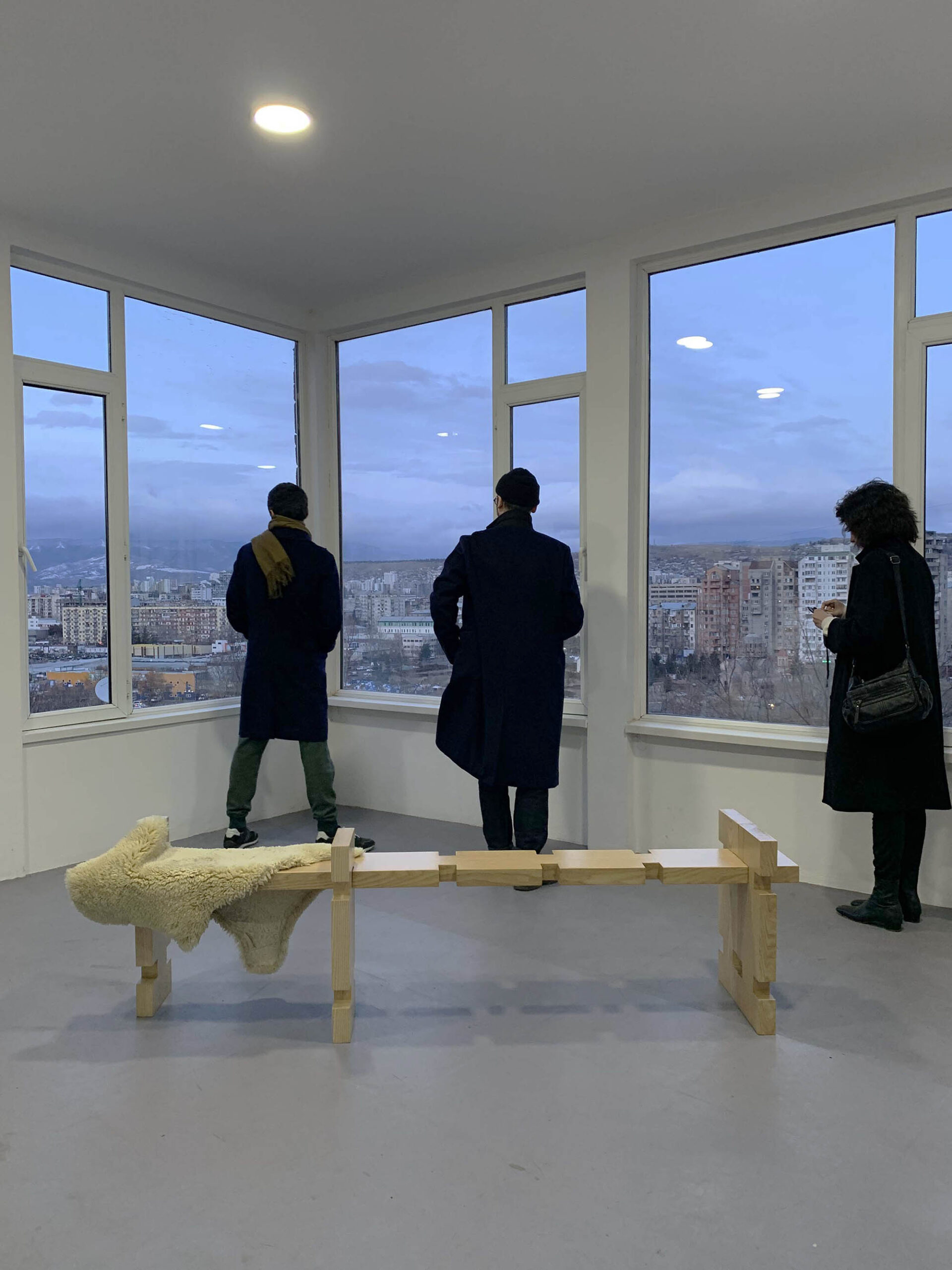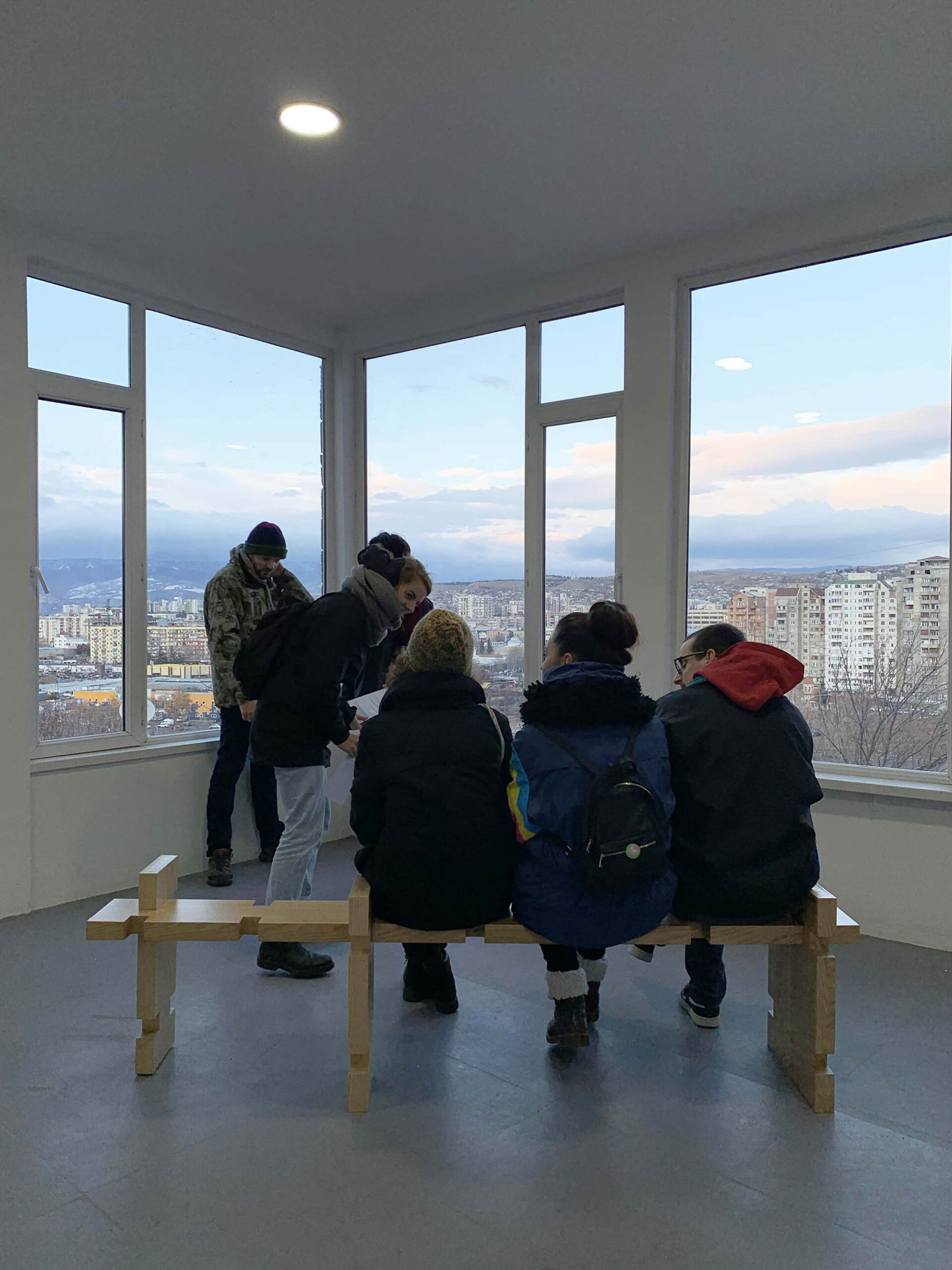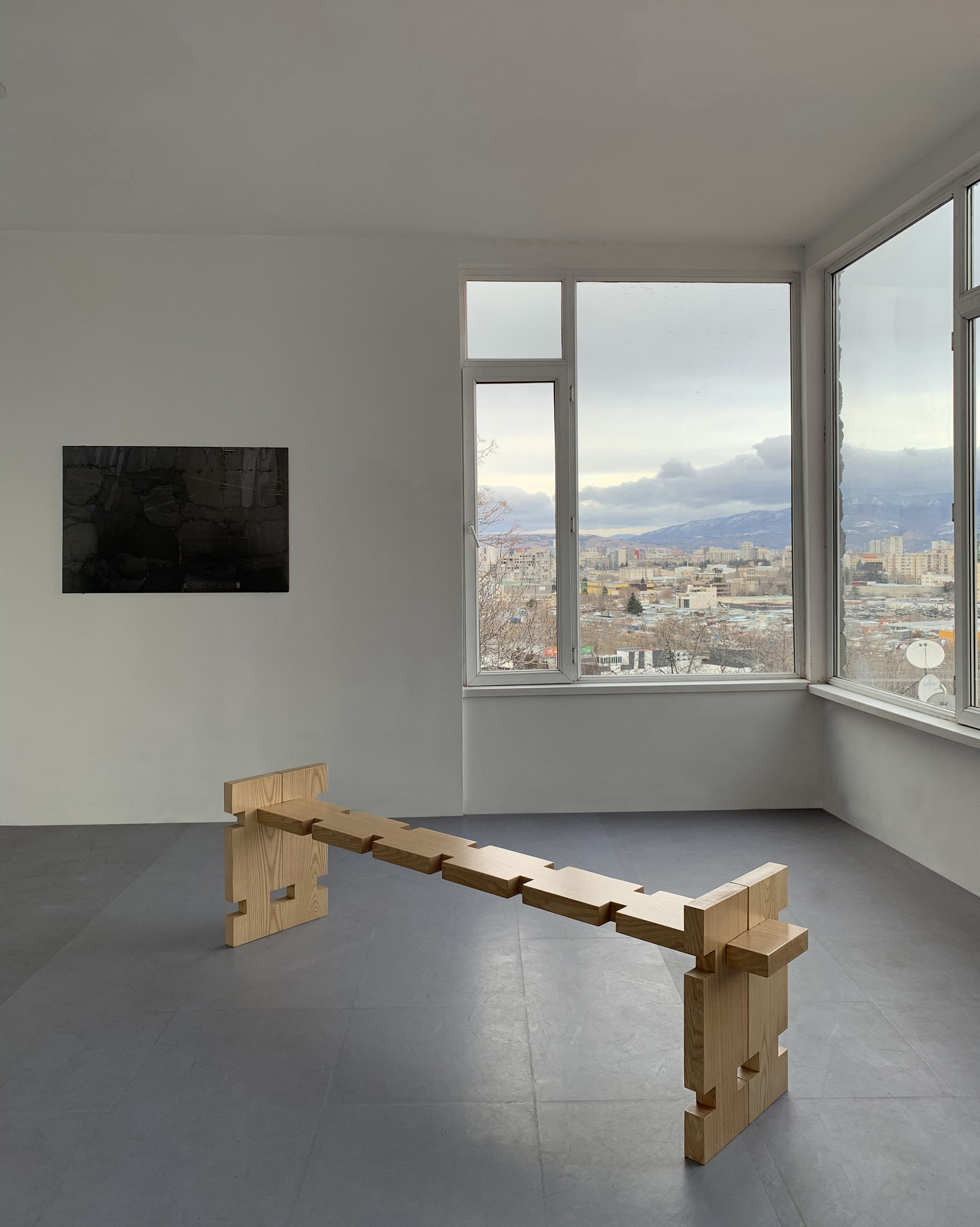 The exhibition featured Nana Zaalishvili’s 3-seater chestnut wood bench ‘Element’ and ‘Forgotten Feelings’-photo series by Nestan Abdushelishvili.“Archive of Forgotten Feelings by Nestan Abdushelishvili is about a transitory period, how the formation of contemporary history takes place through architecture. The photographs are taken with 35mm camera for two years. Images depict various buildings and its facades, without any physical protagonist showing unclear present reality of passing time.