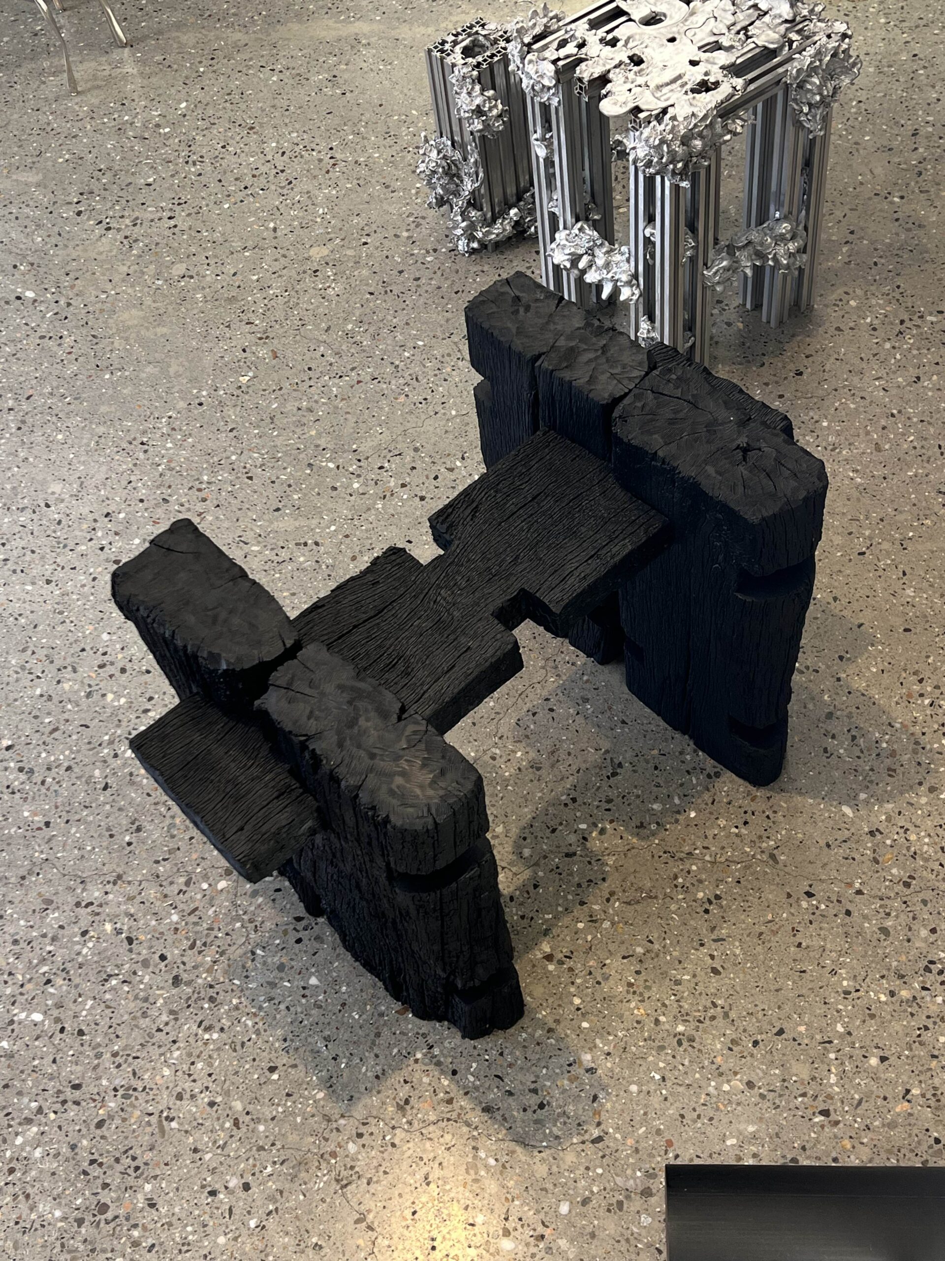 At Milan Design Week 2024, Idaaf Architects presents the black textured wooden stool from the Element Collection. The group exhibition titled WE WERE HERE is curated by designers Joris Verstrepen and Jiin Yoon and will feature an exciting selection of collectible furniture and objects made with natural materials and strong accents of sculptural forms.